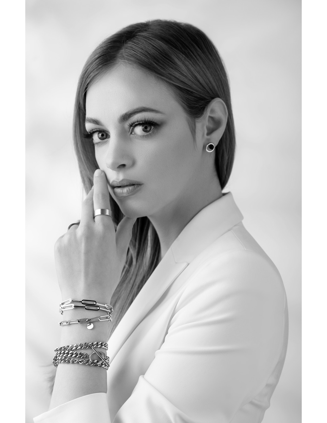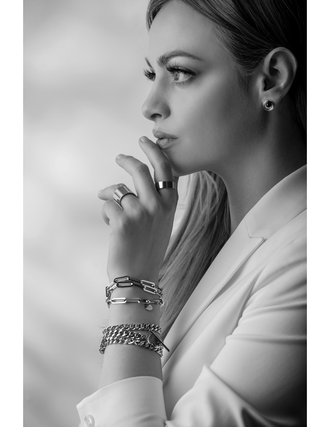 Double-wrap bracelet made of multiple stainless steel chains. Modern, minimal, and ideal with the matching necklace.Product code: BST014