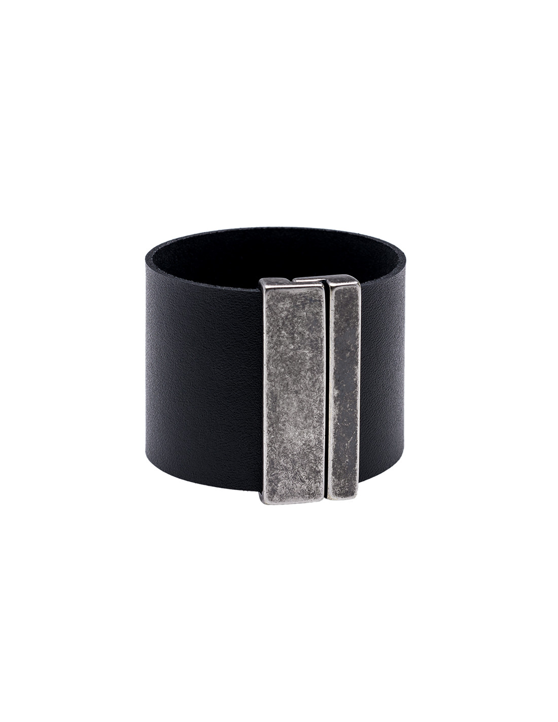 Men’s wide bracelet made of natural leather and stainless steel – strong form and bold style.