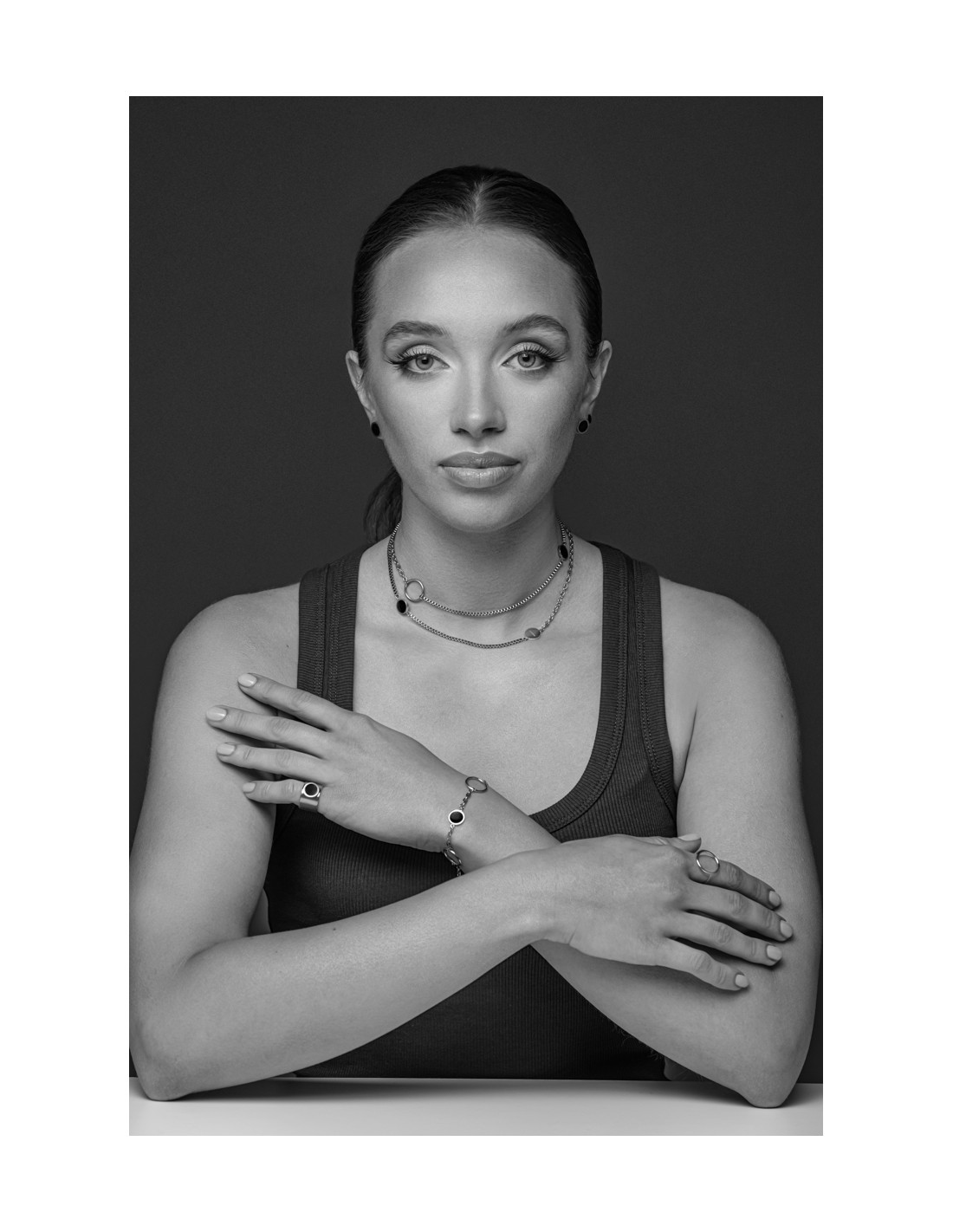 A double matte black stainless steel chain of the highest quality. Modern and edgy, perfect to wear in many different ways.