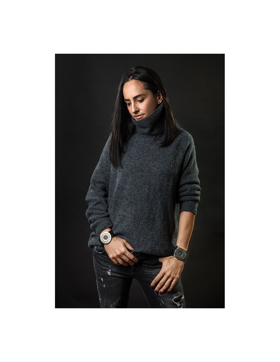 Handmade leather choker necklace with a matte stainless steel circle pendant. A simple, modern, and timeless accessory, perfect for both casual and elegant outfits.Product code: NSpm019