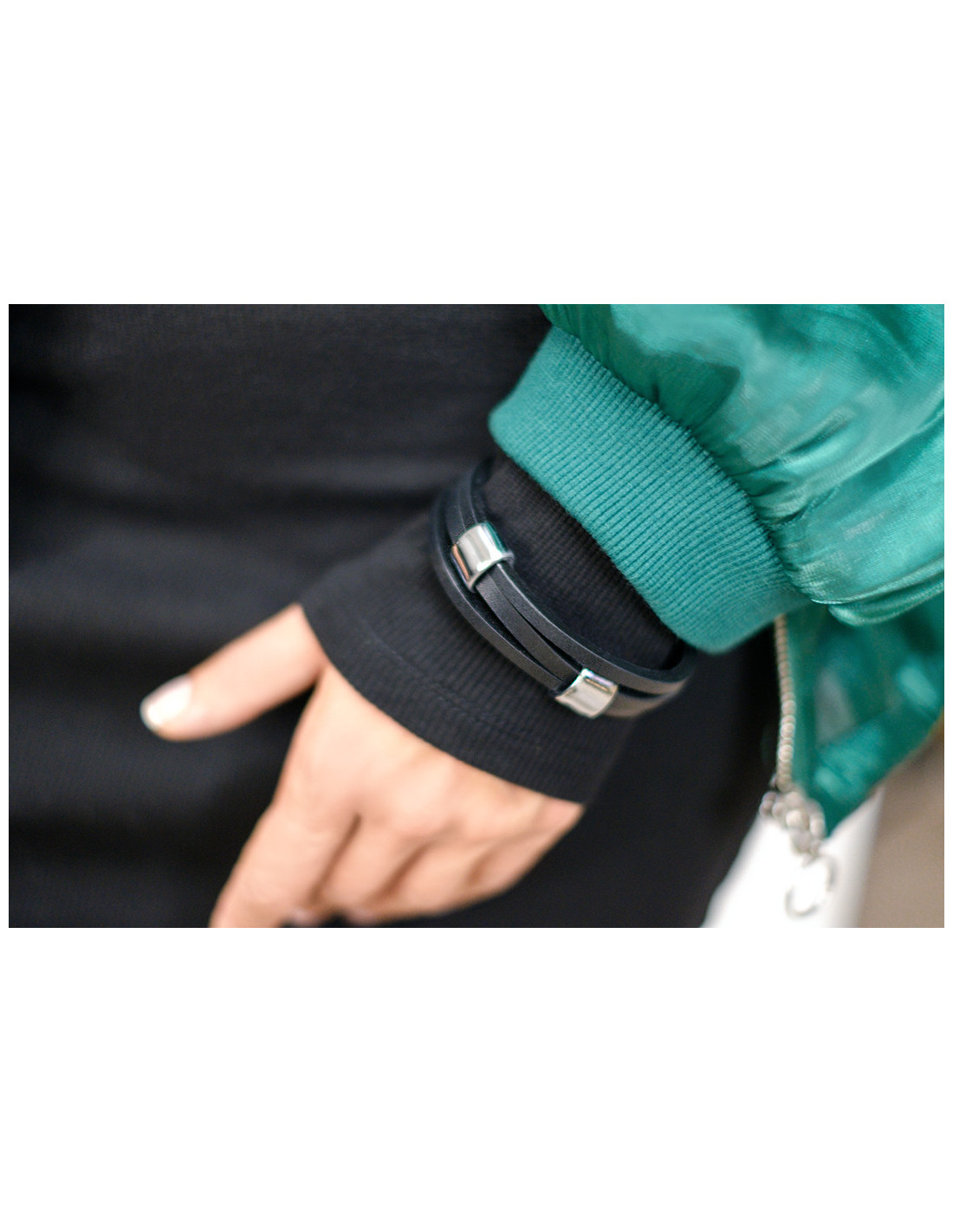 A delicate and modern leather bracelet with a shiny steel accent. Its universal form makes it a great match for both casual and elegant outfits. Simple yet striking – perfect as a gift or a favorite everyday accessory.Product code: BSb01