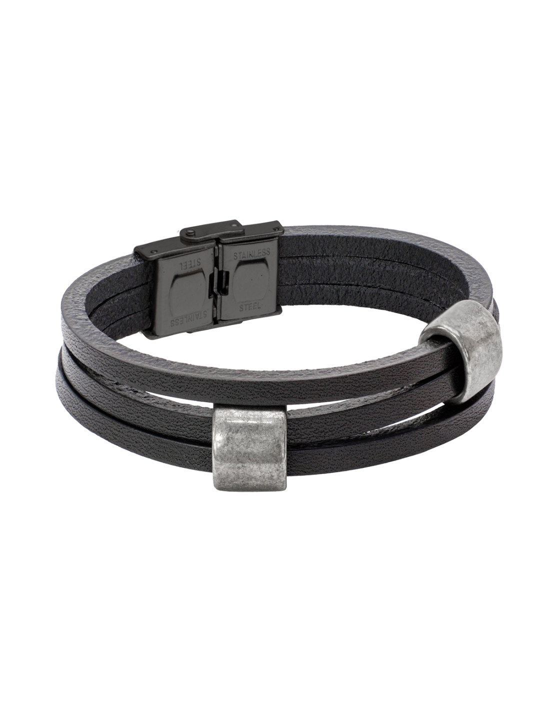 This black leather bracelet with a matte steel detail is a timeless, minimalist piece perfect for everyday wear.Product code: BSM01