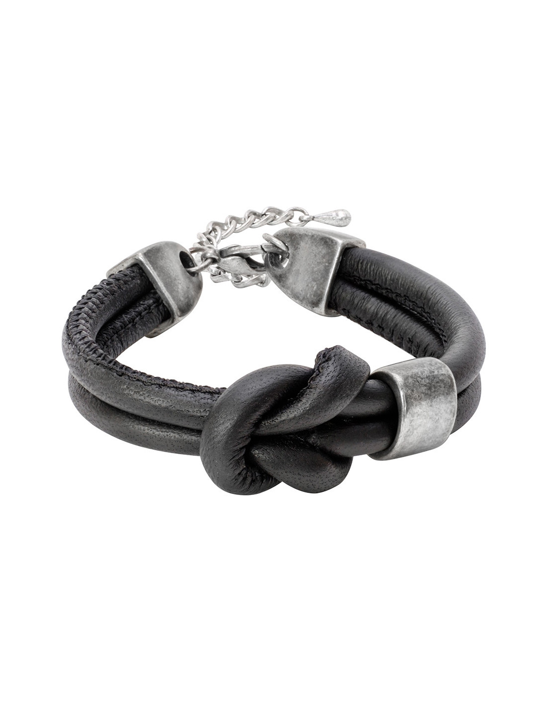 Handmade black leather bracelet with matte stainless steel charms. Adjustable clasp and timeless character.Product code: BSpm029