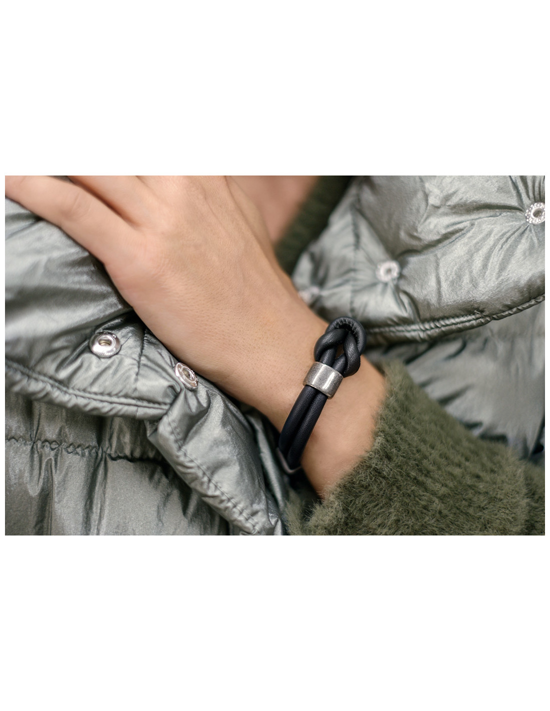 A modern leather bracelet with matte stainless steel elements. Minimalist and timeless, perfect for both casual and elegant outfits.Product code: BSPM018
