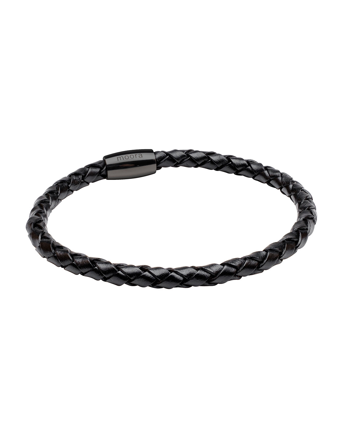 A simple and raw bracelet made of braided genuine leather with a magnetic clasp.Product code: MBSM023