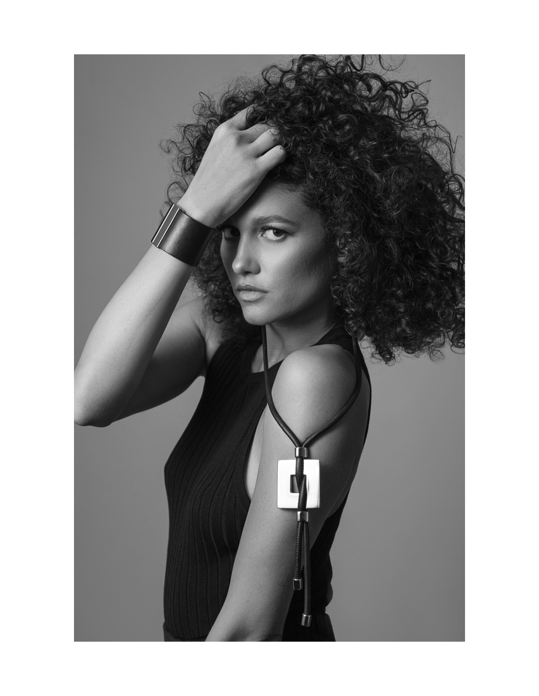 A wide handcrafted bracelet made of black leather and glossy stainless steel. Bold design and top-quality materials make it a standout piece for expressive everyday styling.Product code: BSb00