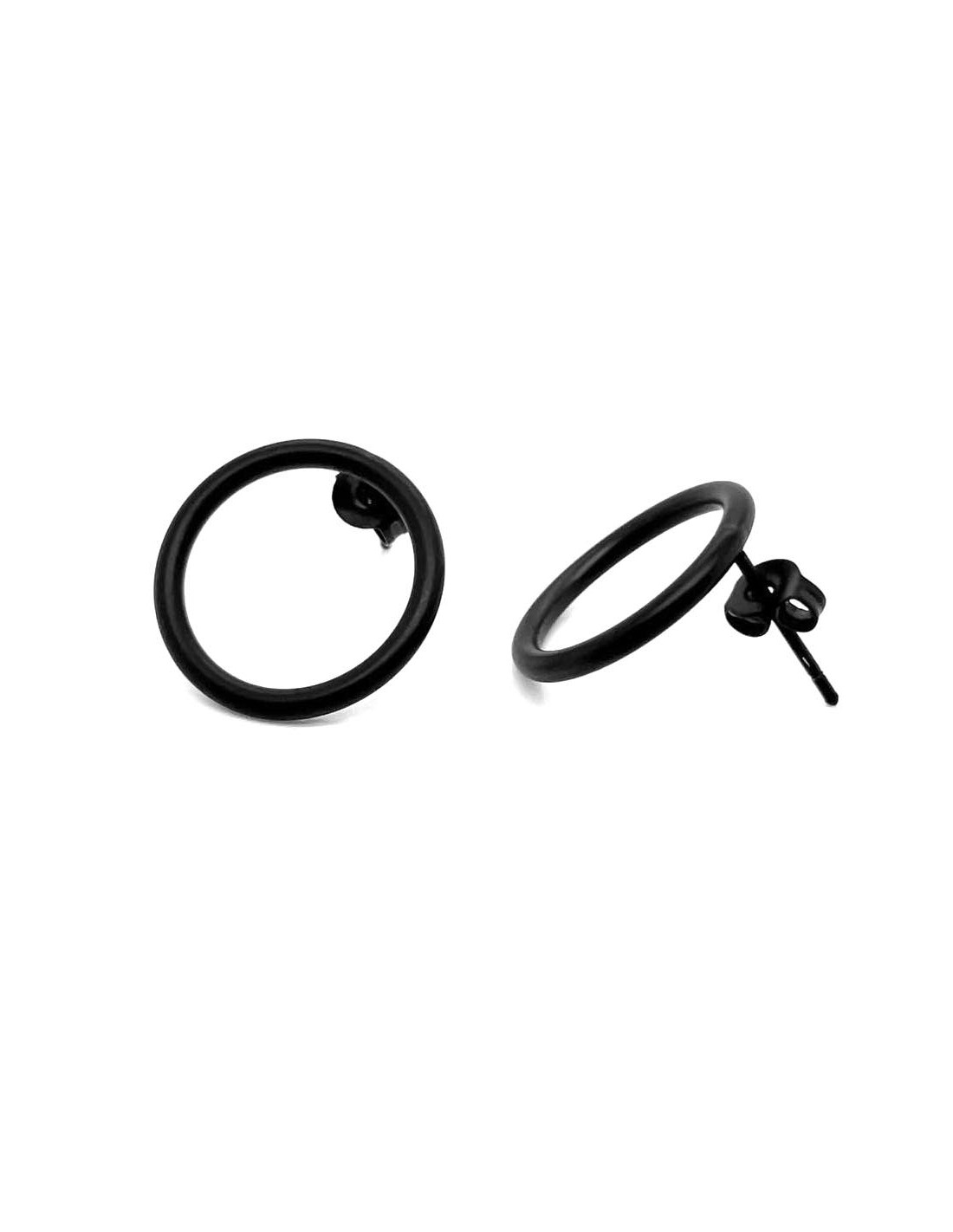 Delicate hoop earrings made of stainless steel in a matte black finish, secured with stud backs. A minimalist accessory that suits any style.Product code: KSTcz061