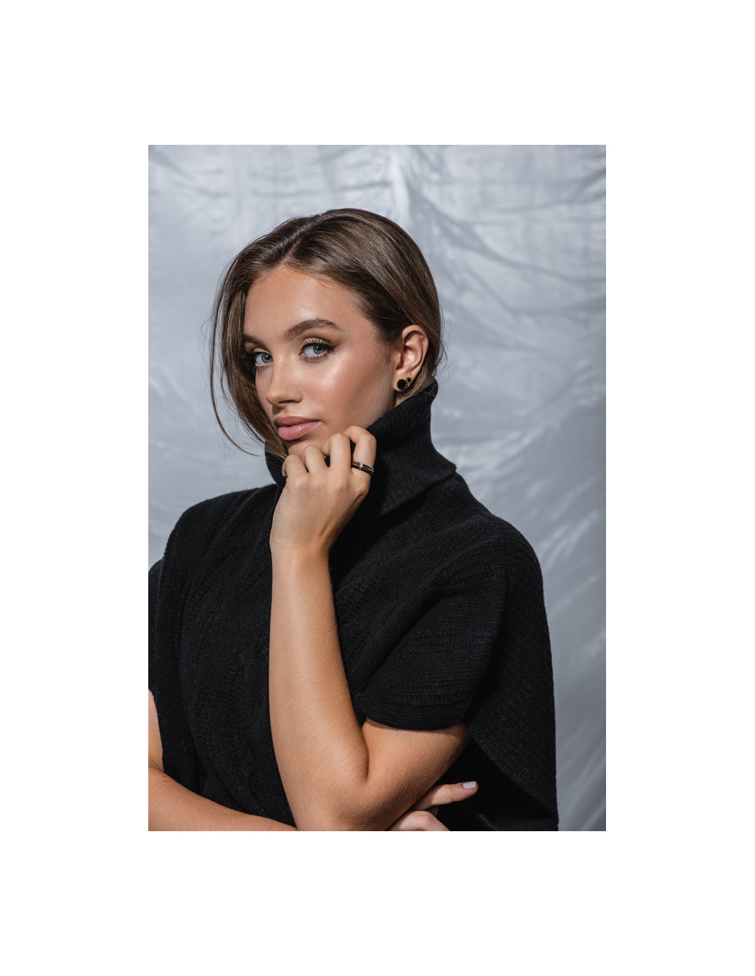 Minimalist 2-in-1 ring made of gold-plated stainless steel – a band ring and a black stone ring. Can be worn together or separately for versatile styling.Product code: PSTz021