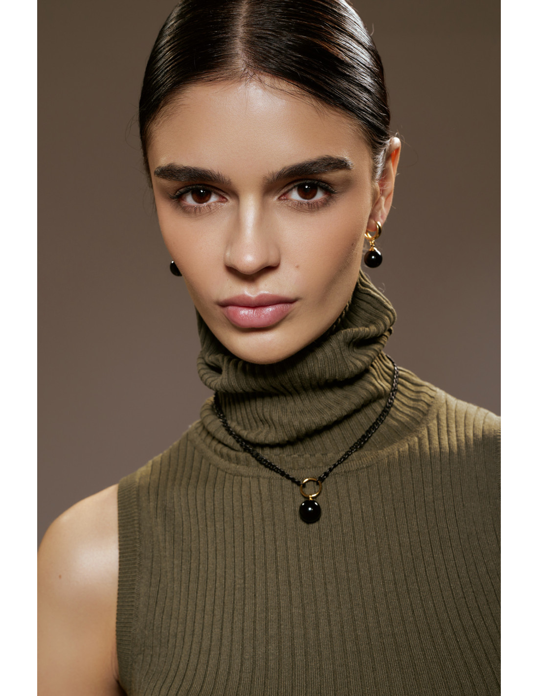 An original, delicate necklace made of the highest quality stainless steel combined with onyx and a choice of chain colors.