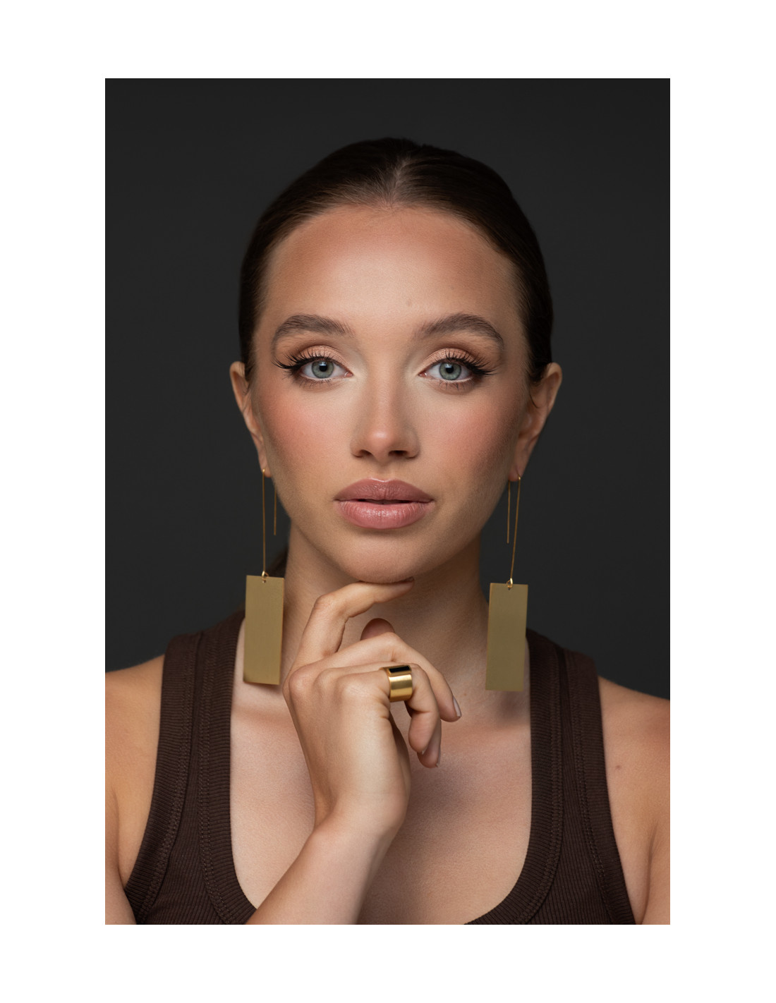 Stainless steel square earrings. Old gold.