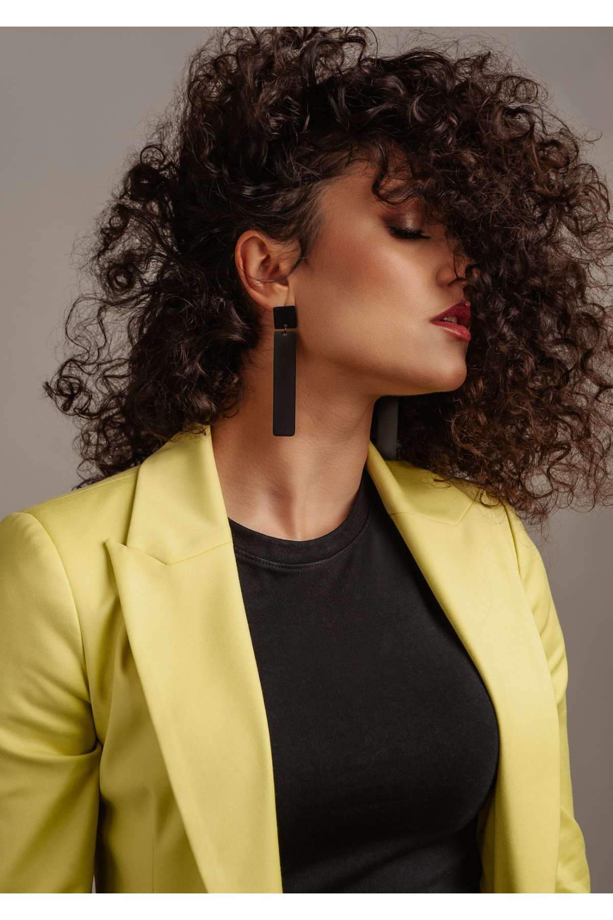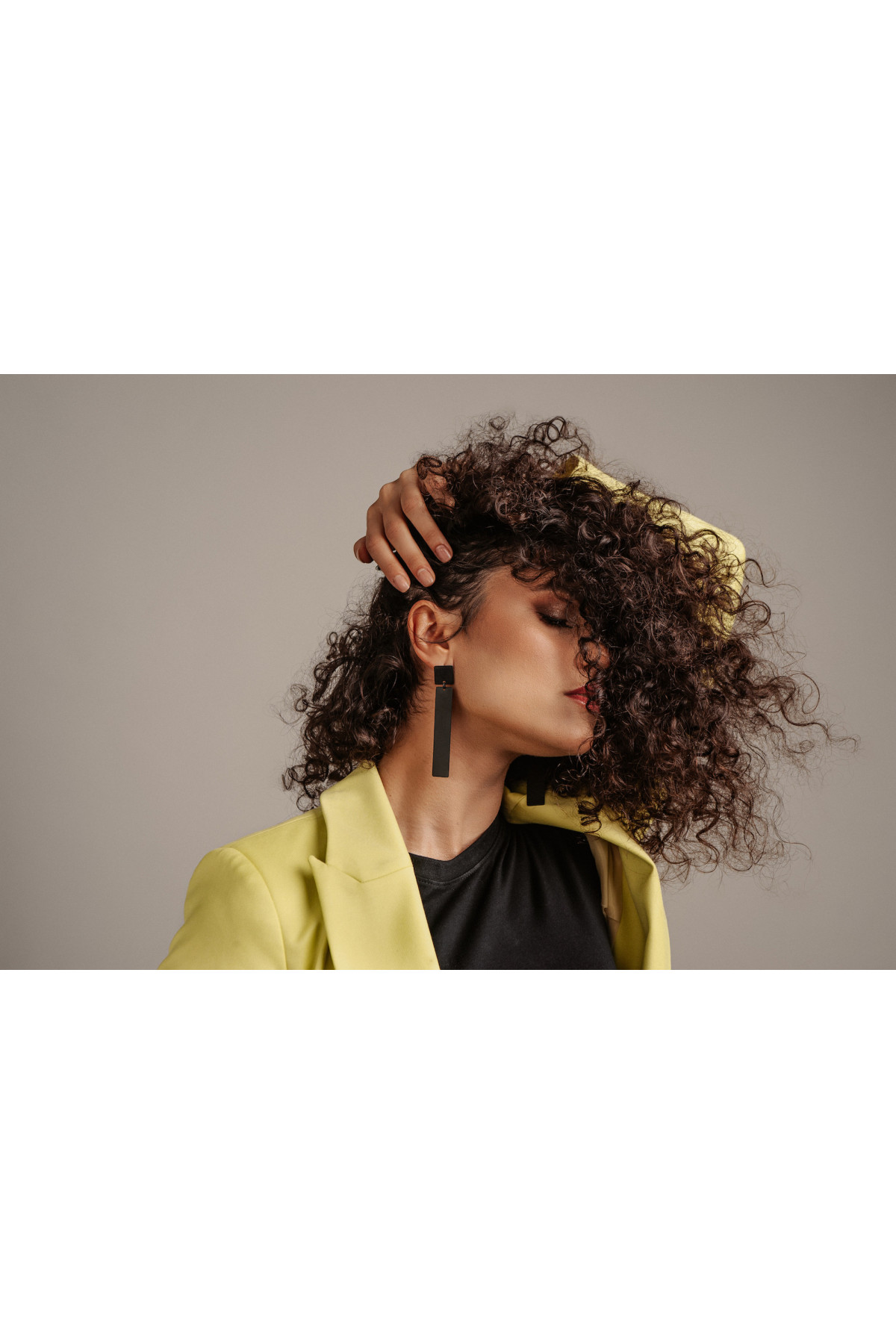Delicate and minimalist earrings made of black matte stainless steel. The set consists of two earrings of different lengths, giving them a unique and modern character. Hypoallergenic and safe for the skin, they will not darken and are perfect for everyday wear.