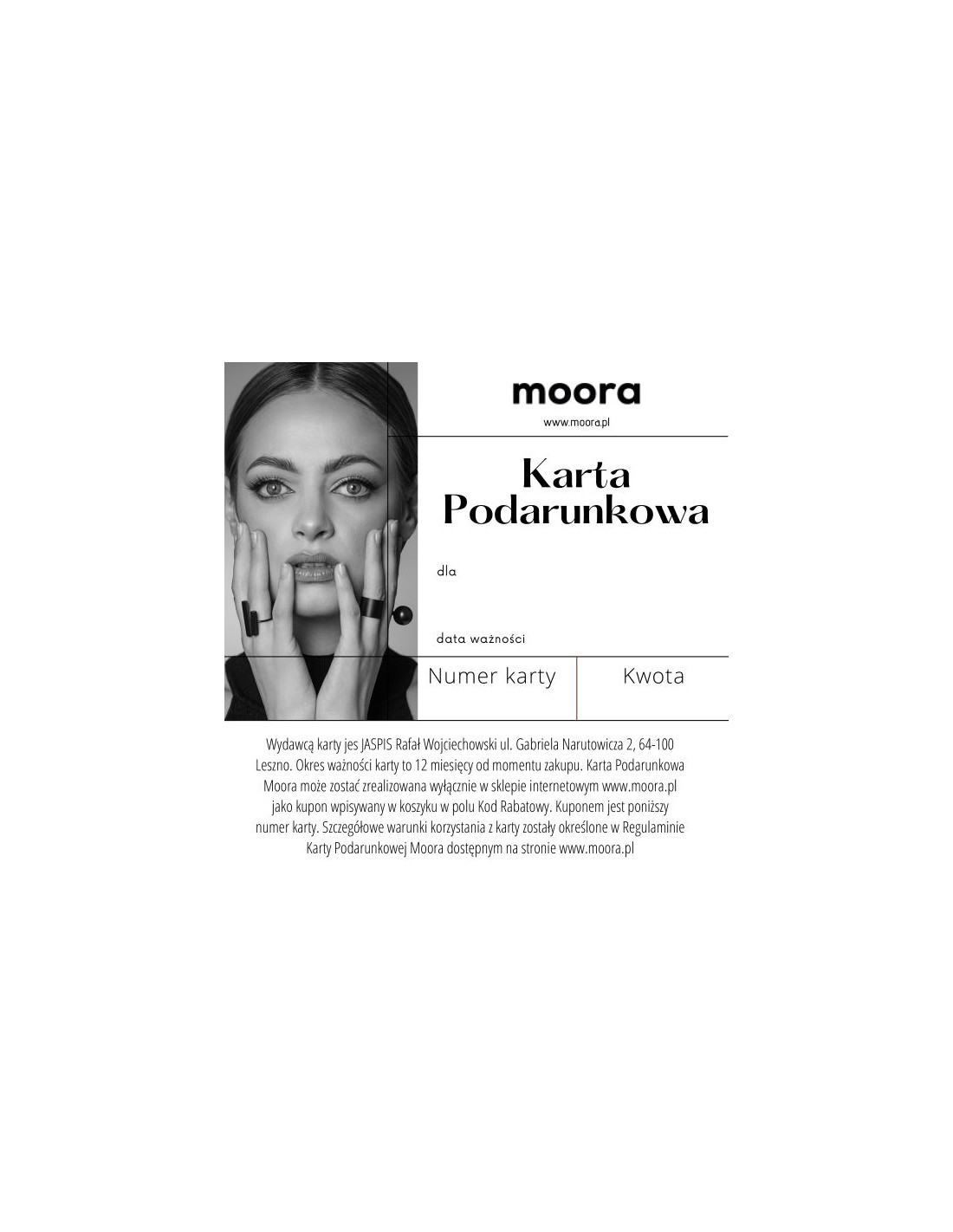 • The Gift Card can be used to purchase any product from the Moora online store
