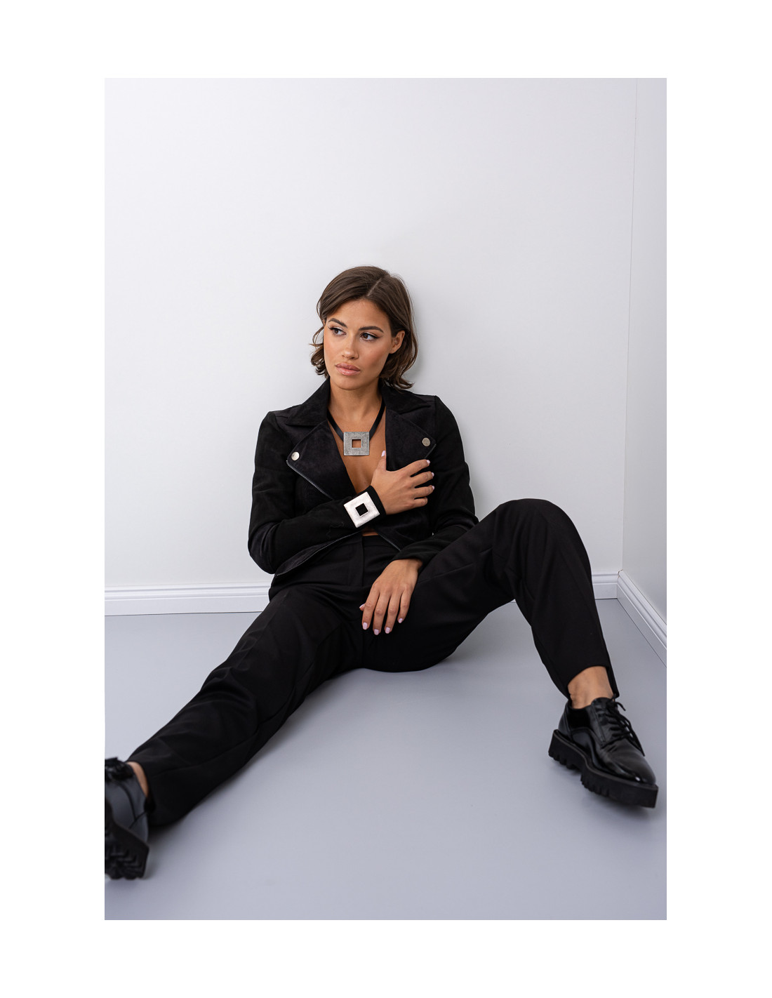 Handmade leather choker necklace with a matte stainless steel square pendant. A modern, simple, and timeless accessory that works perfectly for both casual and elegant outfits.Product code: NSpm018