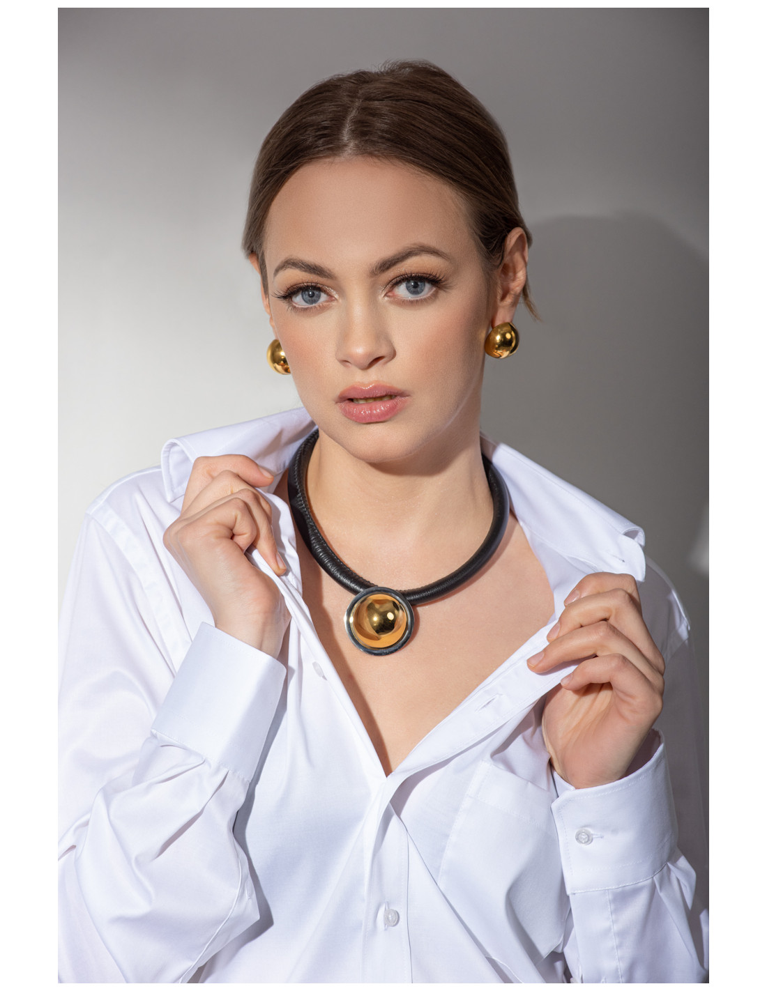 Modern and timeless earrings made of gold-plated 925 sterling silver and large polished stainless steel spheres. Perfect for women who appreciate minimalism and refined style.Product code: KSTz072