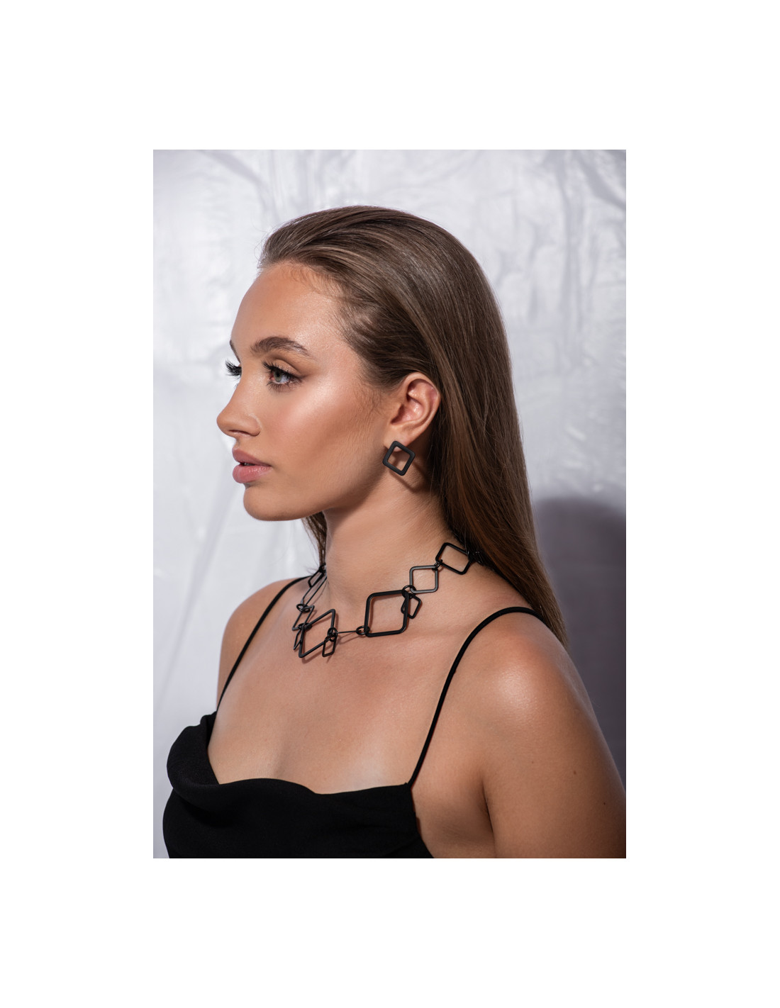 A modern long 3D necklace made of black matte stainless steel. Elegant and unique in its simplicity, it’s a perfect complement to any outfit.Product code: NSTcz076