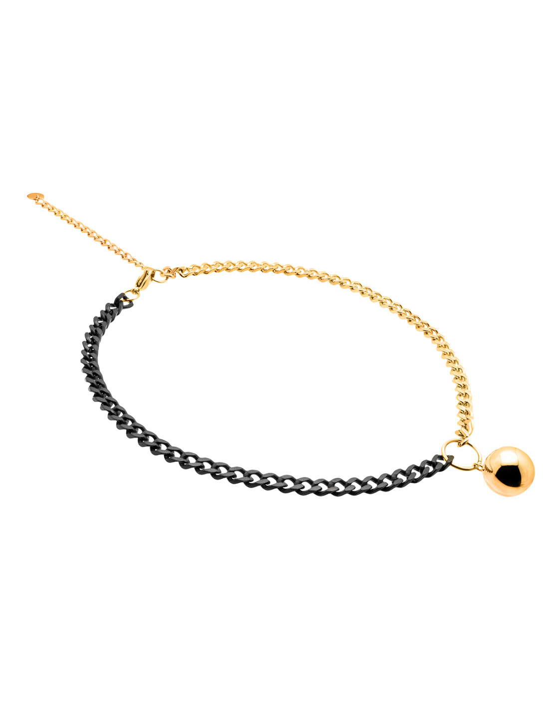 A modern choker with large links and a decorative sphere, made of gold-plated stainless steel. A versatile accessory that matches both sporty and elegant outfits.Product code: NSTz018