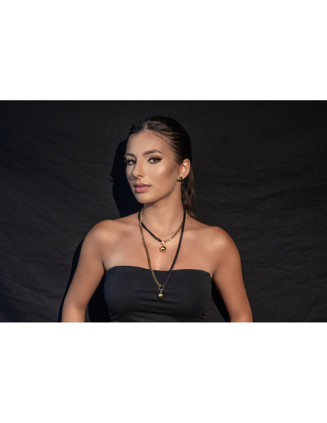 The short adjustable stainless steel necklace with a sphere is a subtle and elegant accessory that beautifully highlights the neckline. Its minimalist form makes it a perfect match for both everyday and evening outfits.Product code: NST050