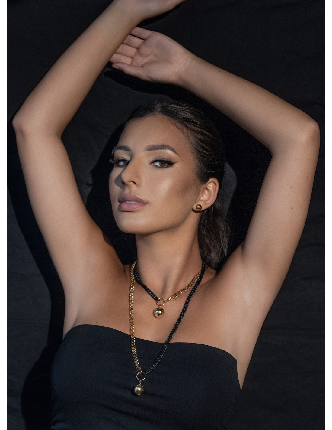 A timeless double-chain necklace with a decorative half-sphere pendant made of high-quality gold-plated stainless steel. A perfect choice for those who value elegant minimalism and modern design.Product code: NSTz069