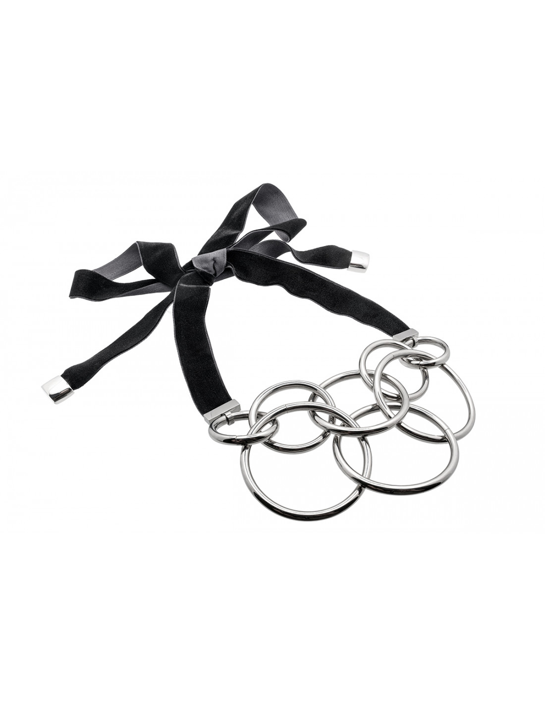 Attract gazes. Long Silver Circle necklace made of leather and stainless steel.