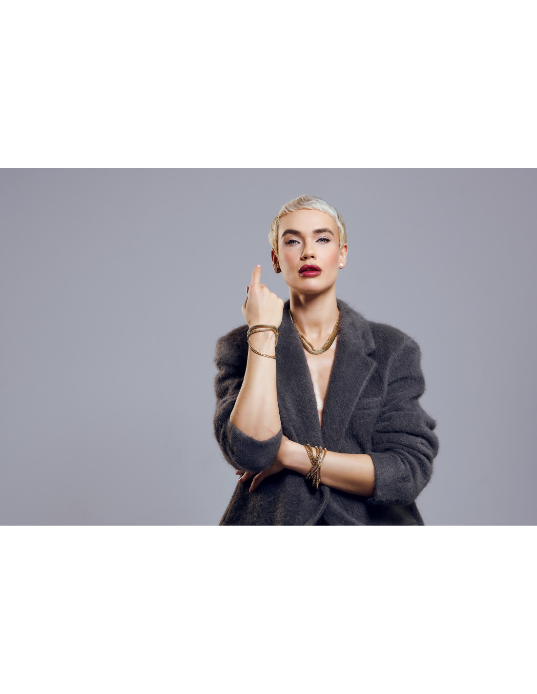 Double-wrap bracelet made of multiple stainless steel chains. Modern, minimal, and ideal with the matching necklace.Product code: BST014