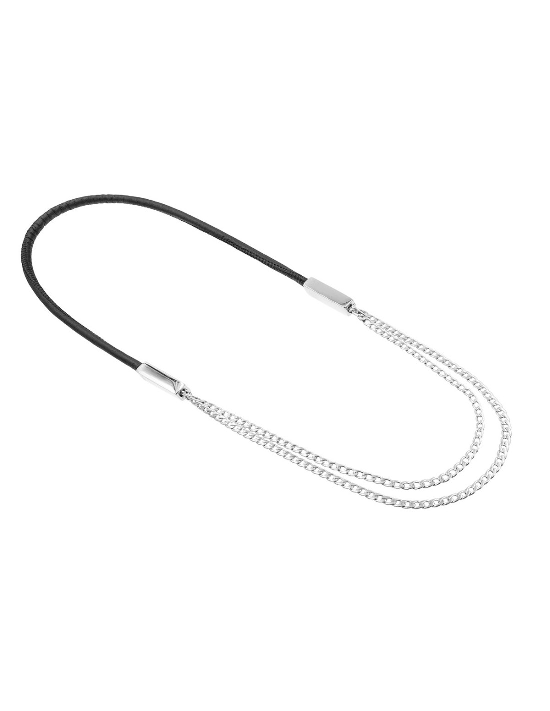 Necklace made of leather and fine stainless steel chain