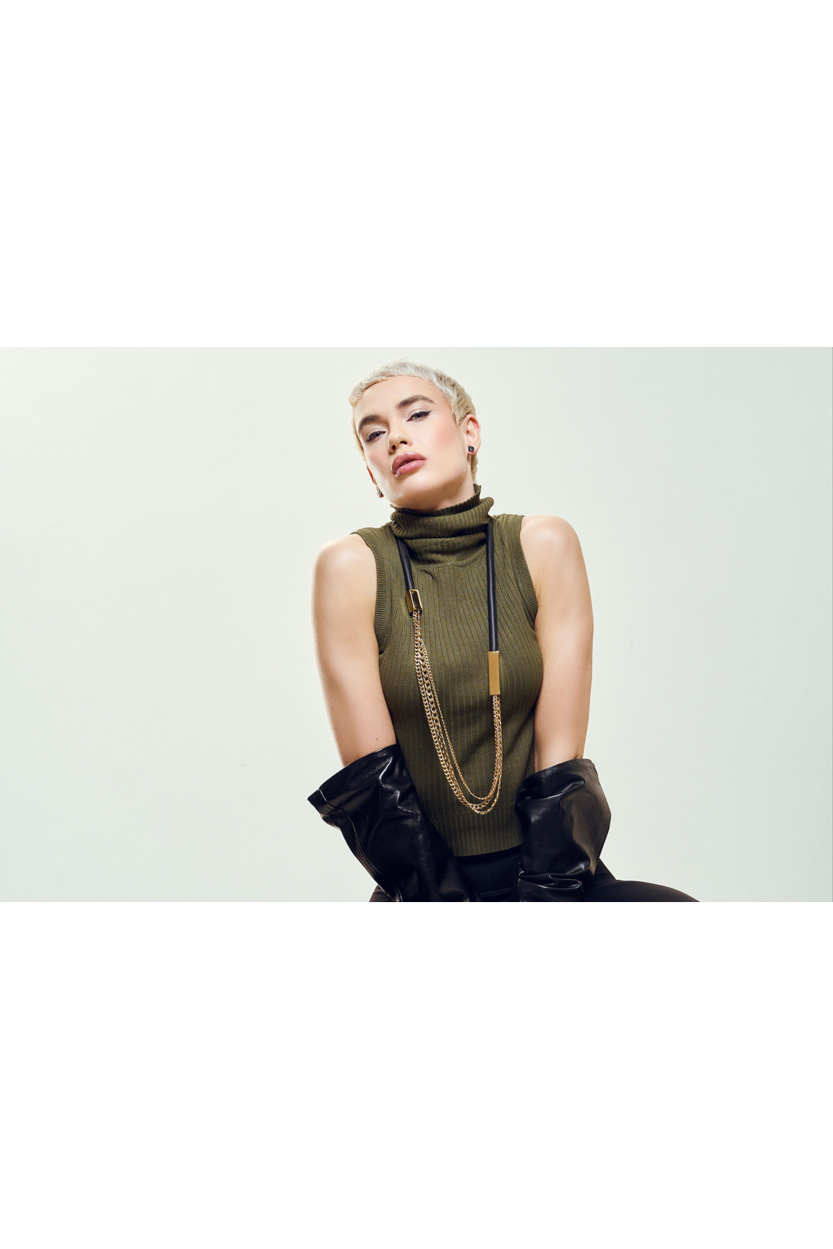 This modern handmade necklace combines black natural leather with high-quality gold stainless steel. Its long, elegant silhouette and contrast of textures make it an outstanding accessory for both everyday wear and evening outfits. Stainless steel is non-allergenic and does not tarnish, maintaining its shine for a long time. A perfect choice for those who appreciate distinctive, handcrafted jewelry.