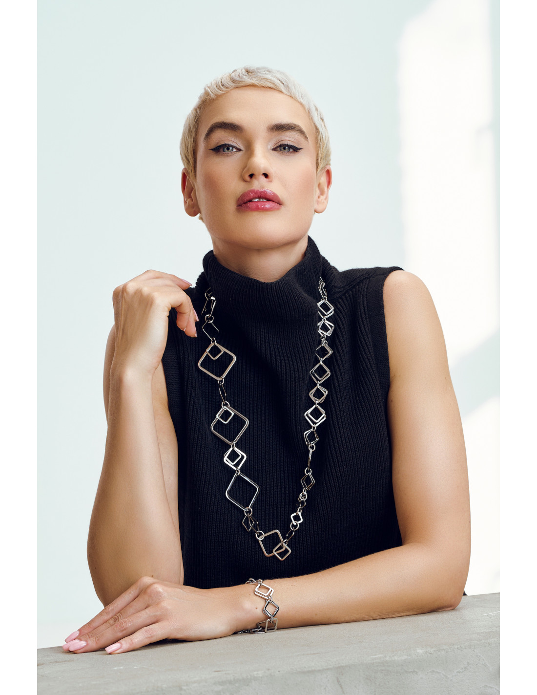 A simple and modern 3D necklace made of the highest quality stainless steel. The movable elements add lightness and an elegant touch.Product code: NST049