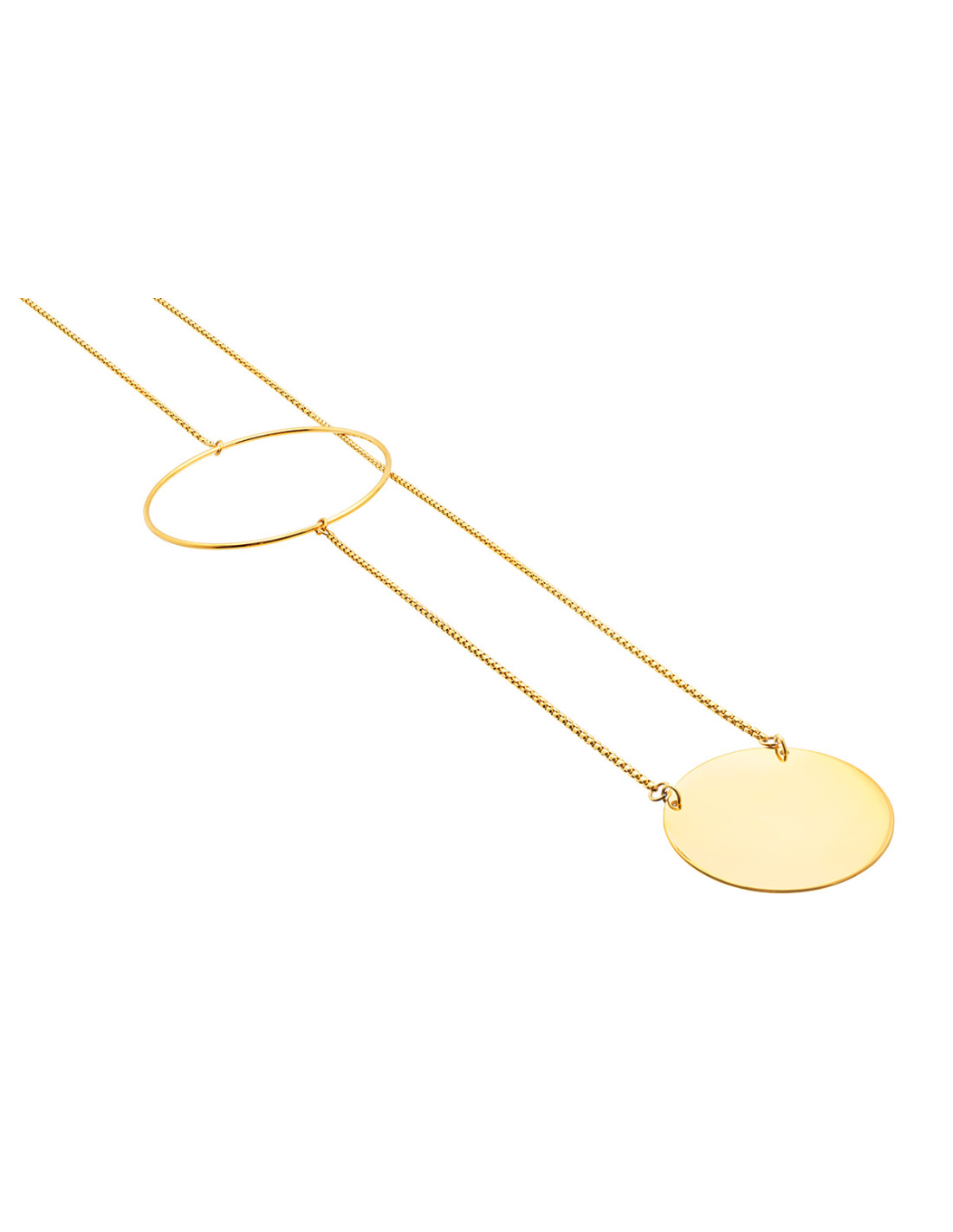This long gold-colored stainless steel necklace combines modern minimalism with classic elegance.