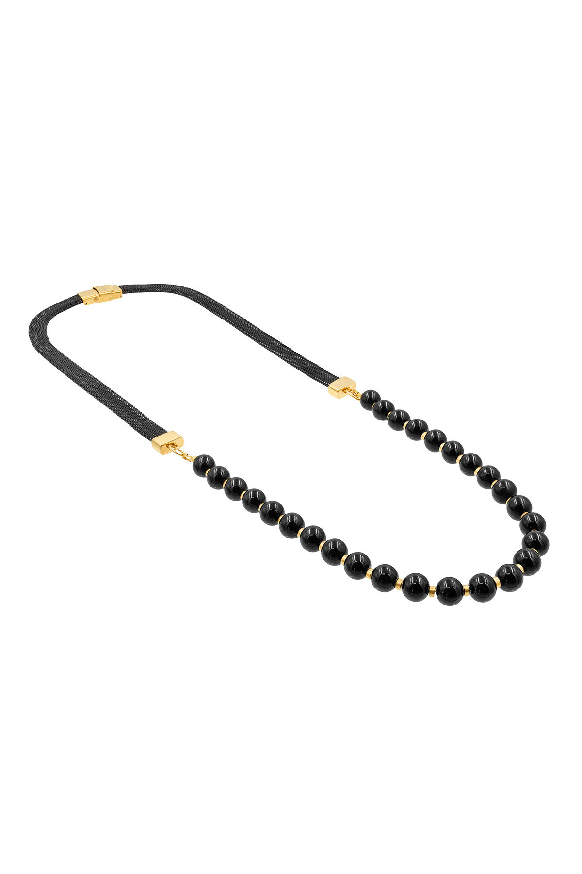 This delicate bracelet, made of small 3 mm onyx stones and gold-plated beads, combines subtle elegance with modern minimalism. The gold-coloured toggle clasp adds to its unique charm.