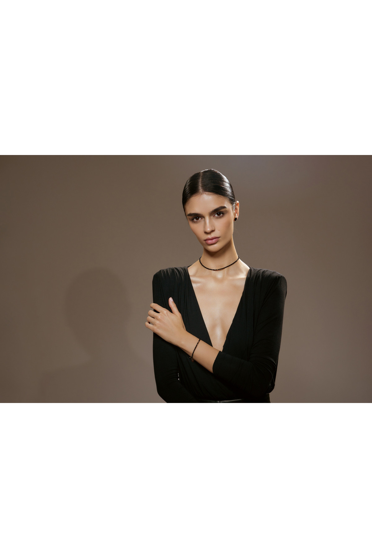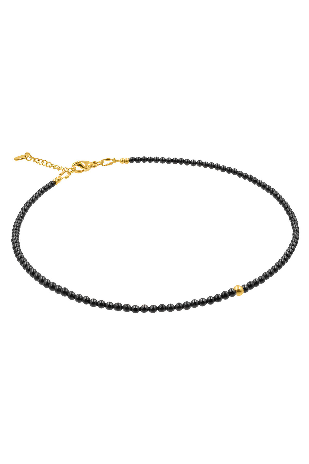 A delicate adjustable necklace made of small, 3 mm onyx stones connected with gold-plated or silver beads creates an elegant and subtle whole. The adjustable clasp in gold or silver adds a modern touch. This necklace introduces a note of elegant simplicity and timeless charm to your style.
