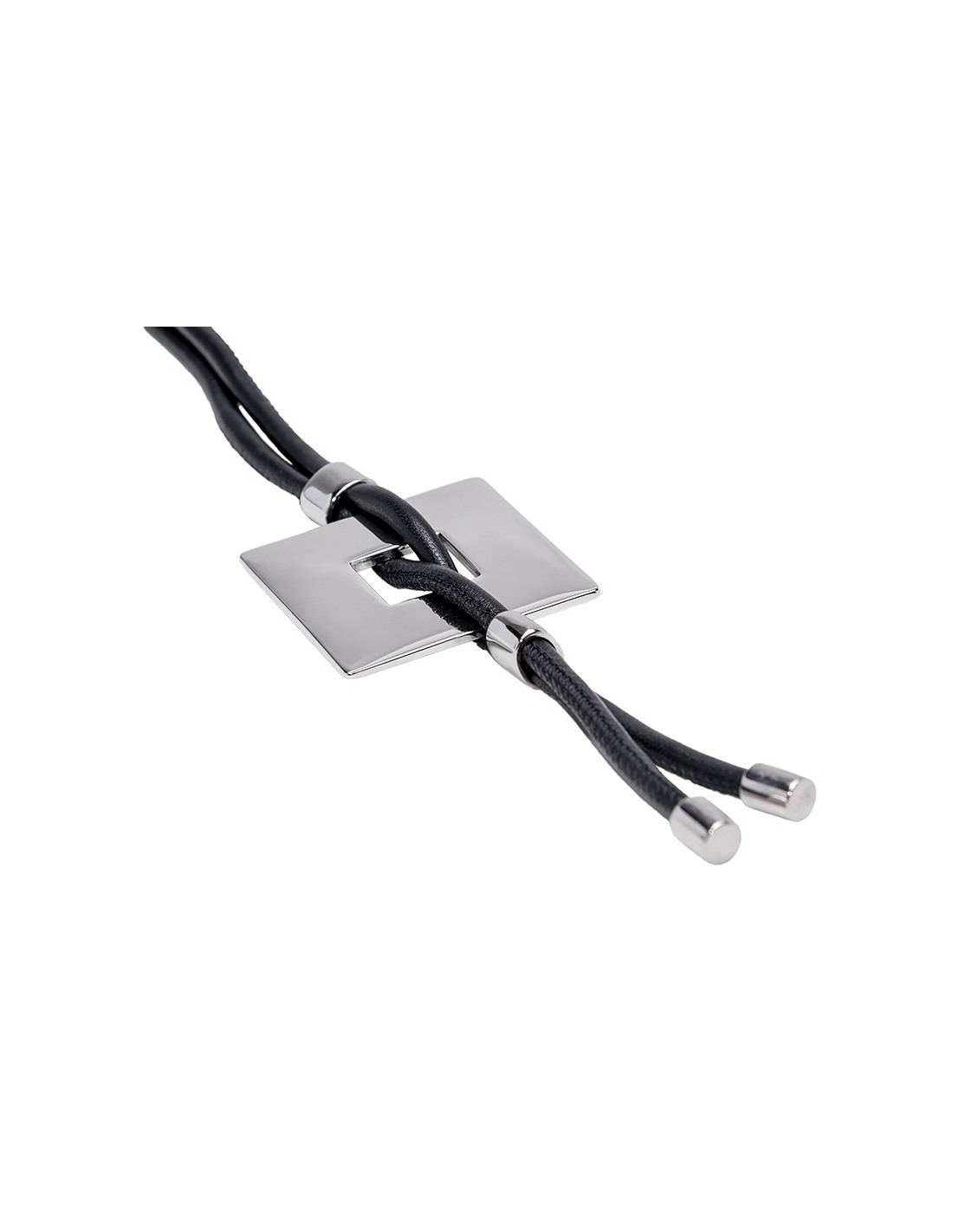 Handmade leather necklace with a shiny stainless steel square pendant. Can be worn both long and short, making it a highly versatile accessory.Product code: NSpb012