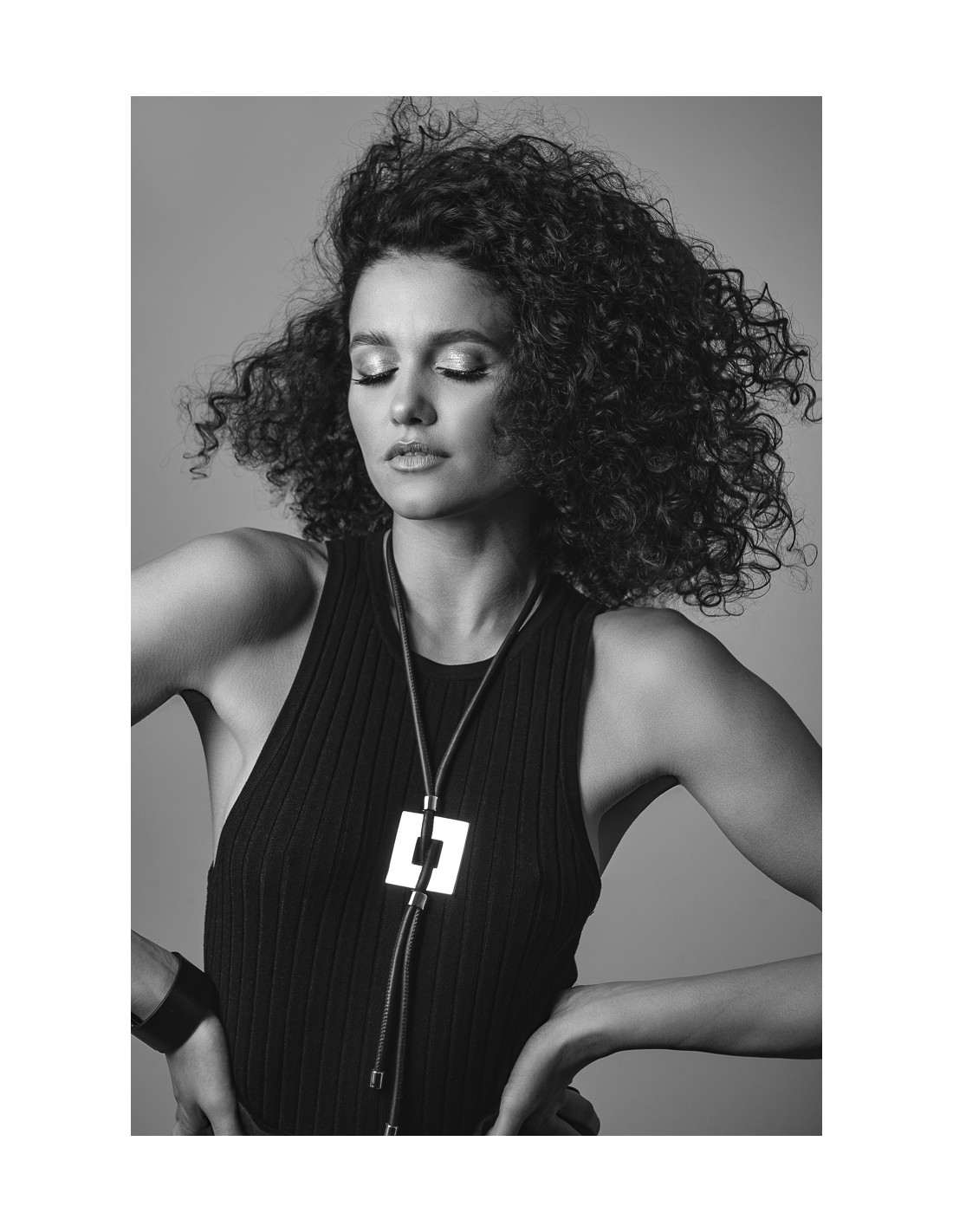 A modern long 3D necklace made of silver stainless steel. Elegant, minimalist and timeless jewelry for any occasion.Product code: NST076