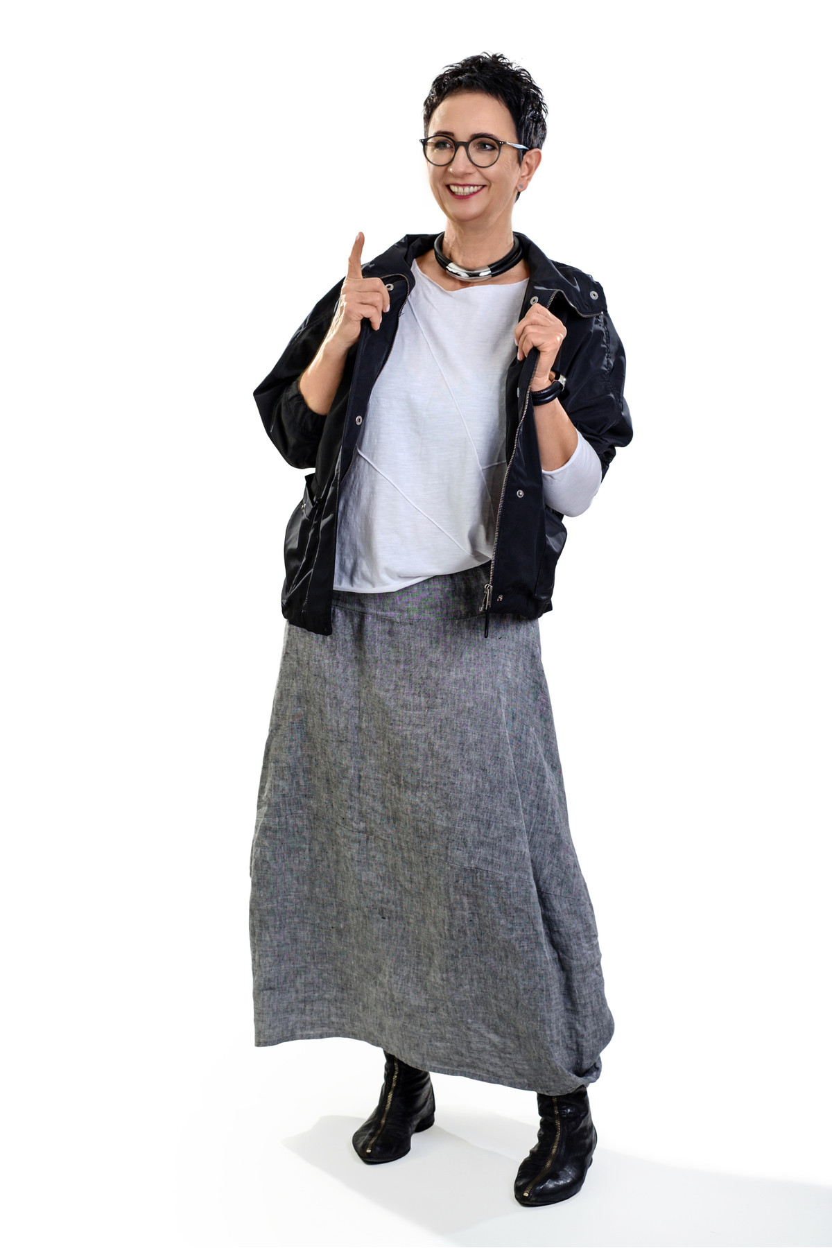 The necklace is crafted from soft, hand-stitched leather cord with a cotton core. The large matte stainless steel element adds a minimalist and bold touch. Thanks to the magnetic clasp, the necklace is quick and comfortable to wear.