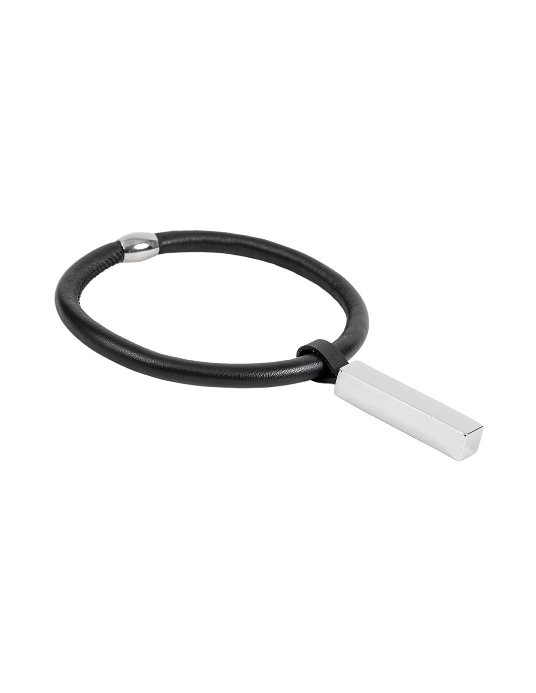 Handcrafted bracelet made of natural leather and polished stainless steel – a classic form in a modern edition.