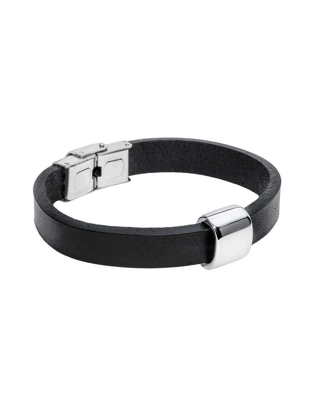 This black leather bracelet with a polished stainless steel element is a timeless accessory with a modern touch. Handcrafted and secured with a classic watch-style clasp.Product code: Bsrpb003