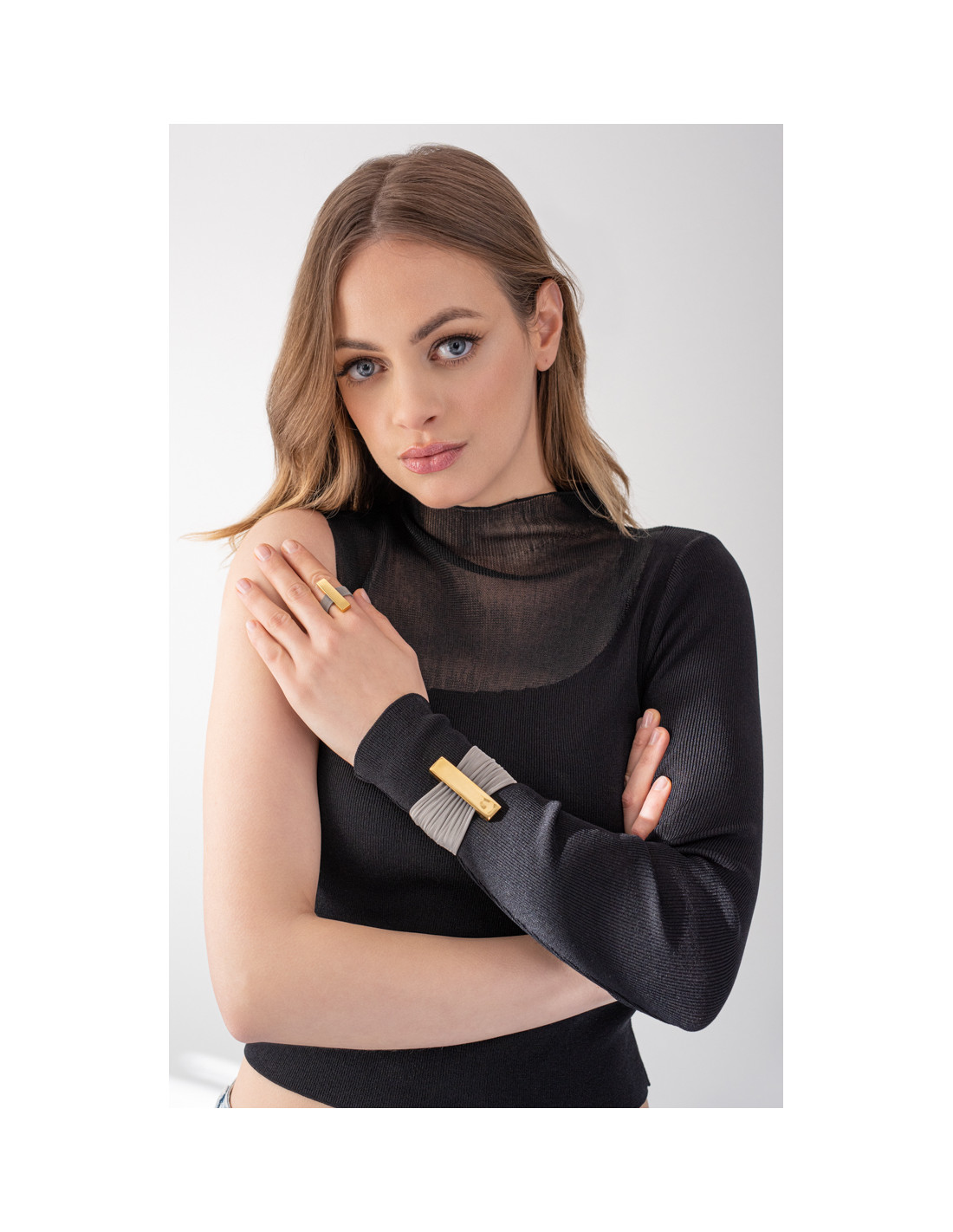 Handcrafted bracelet made of fine stainless steel mesh and gold-plated stainless steel – a fusion of elegance and bold style.Lightweight, flexible, yet durable – perfect for both everyday wear and special occasions.