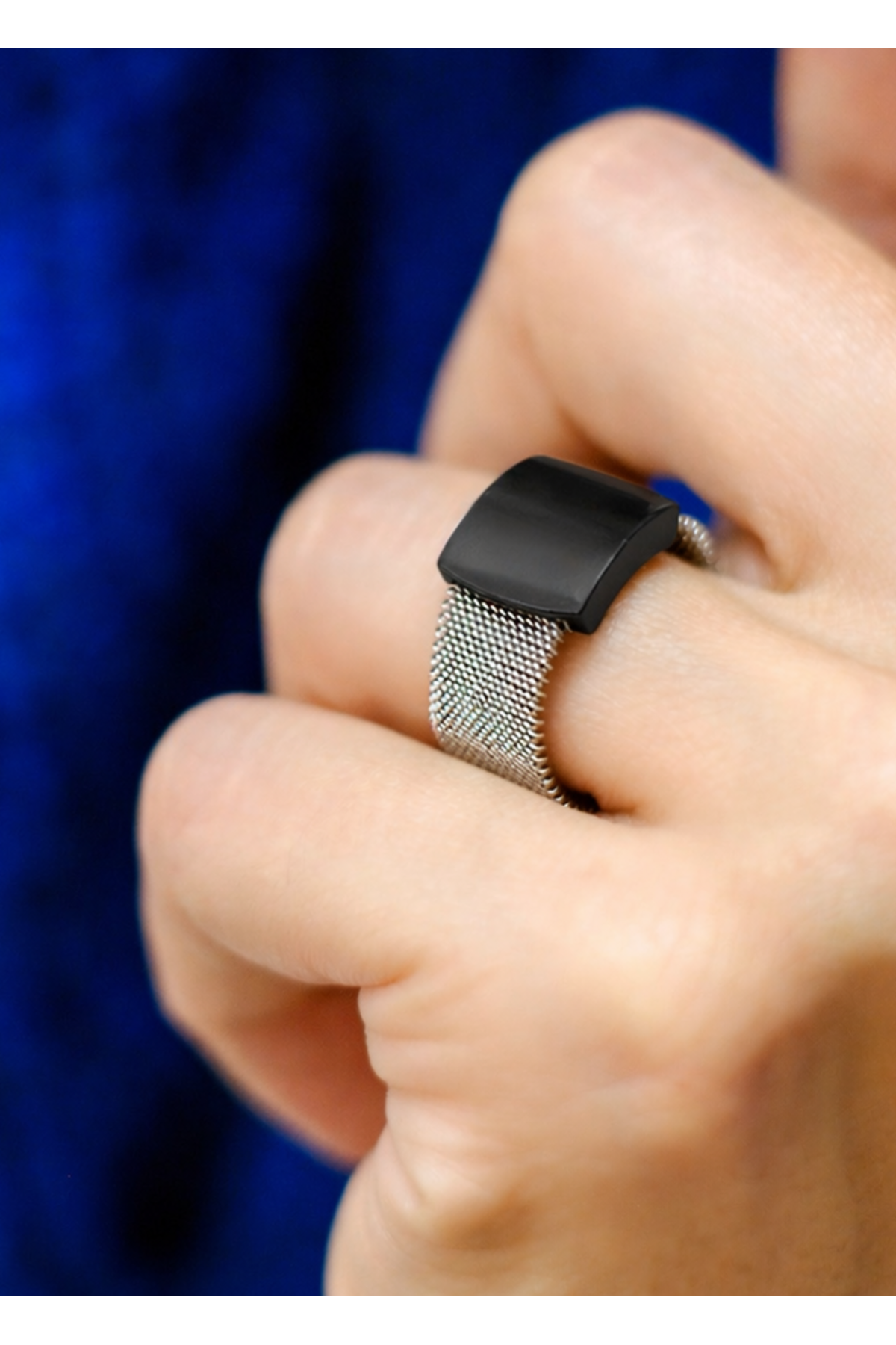 An elegant and modern ring handcrafted from premium stainless steel and fine jewelry mesh. The combination of black matte steel and silver mesh gives it a unique, timeless character.Product code: PSTcz043
