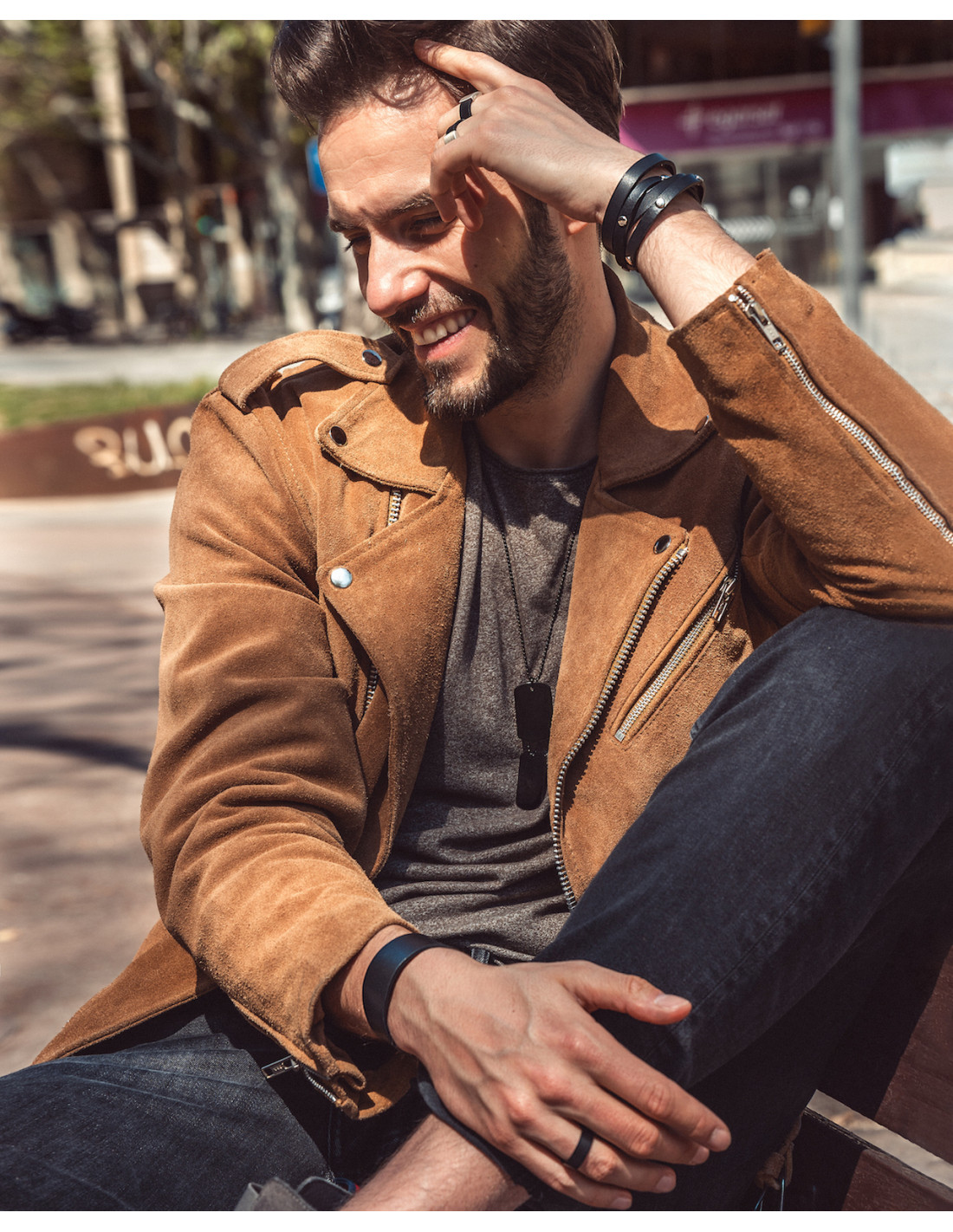 Handmade men’s bracelet crafted from genuine leather and stainless steel. A timeless accessory for any outfit.Product code: MBSM007