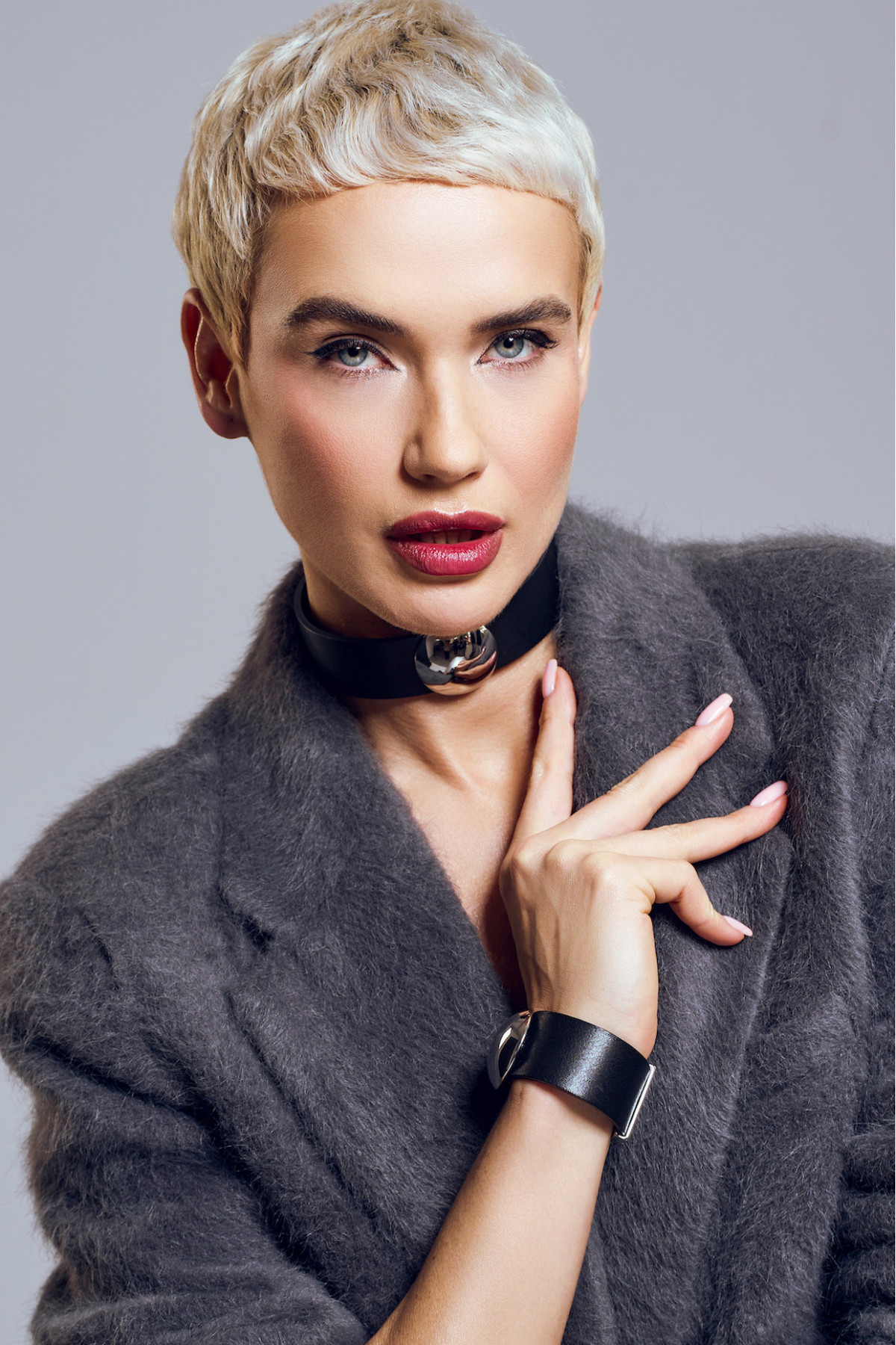 This handmade choker, crafted from genuine leather and stainless steel, is a bold yet elegant accessory for those who appreciate quality and modern design. The striking hemisphere gives it a unique edge, while the wide leather band lies beautifully on the neck. A perfect match for both casual and evening outfits.