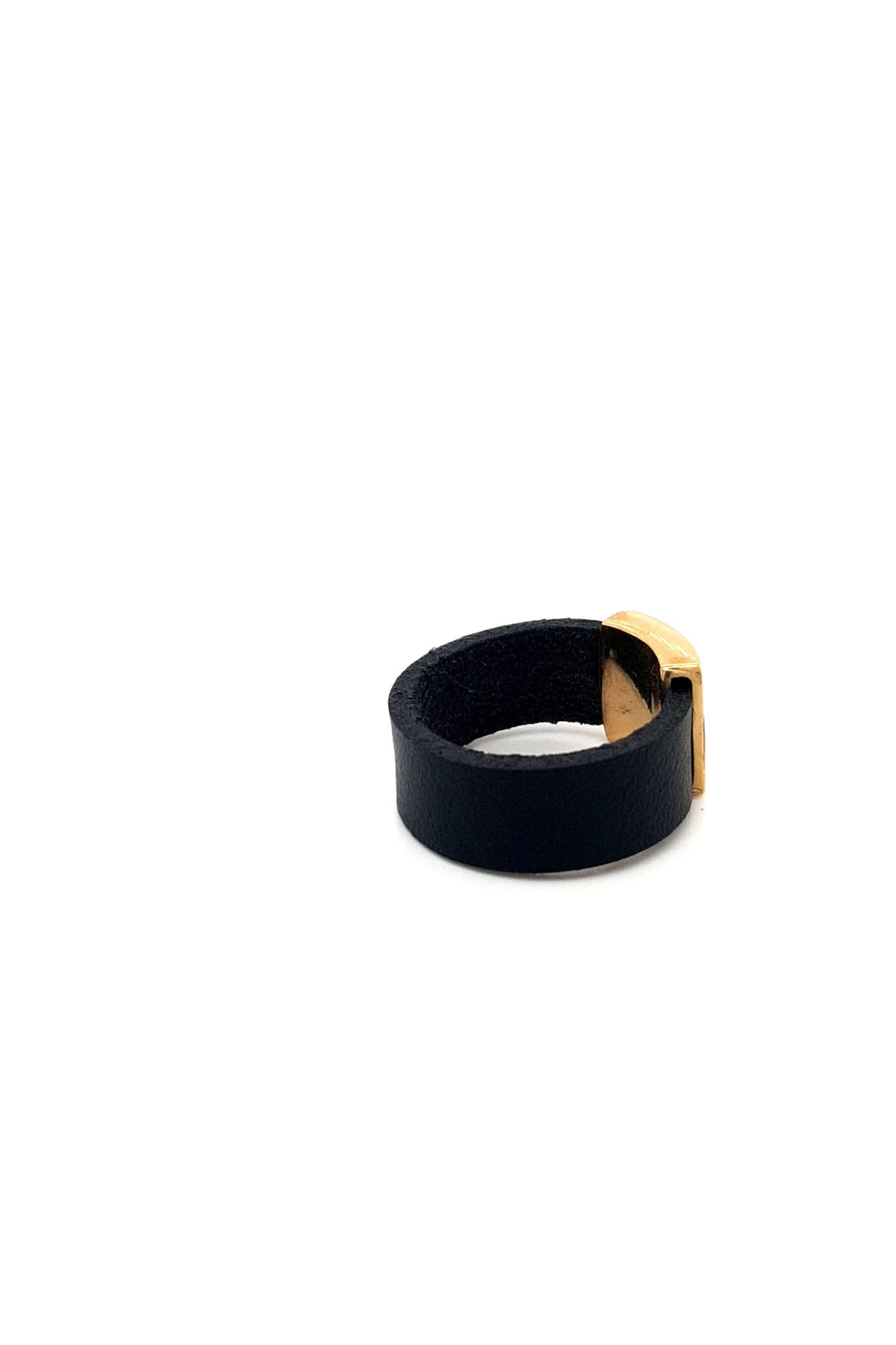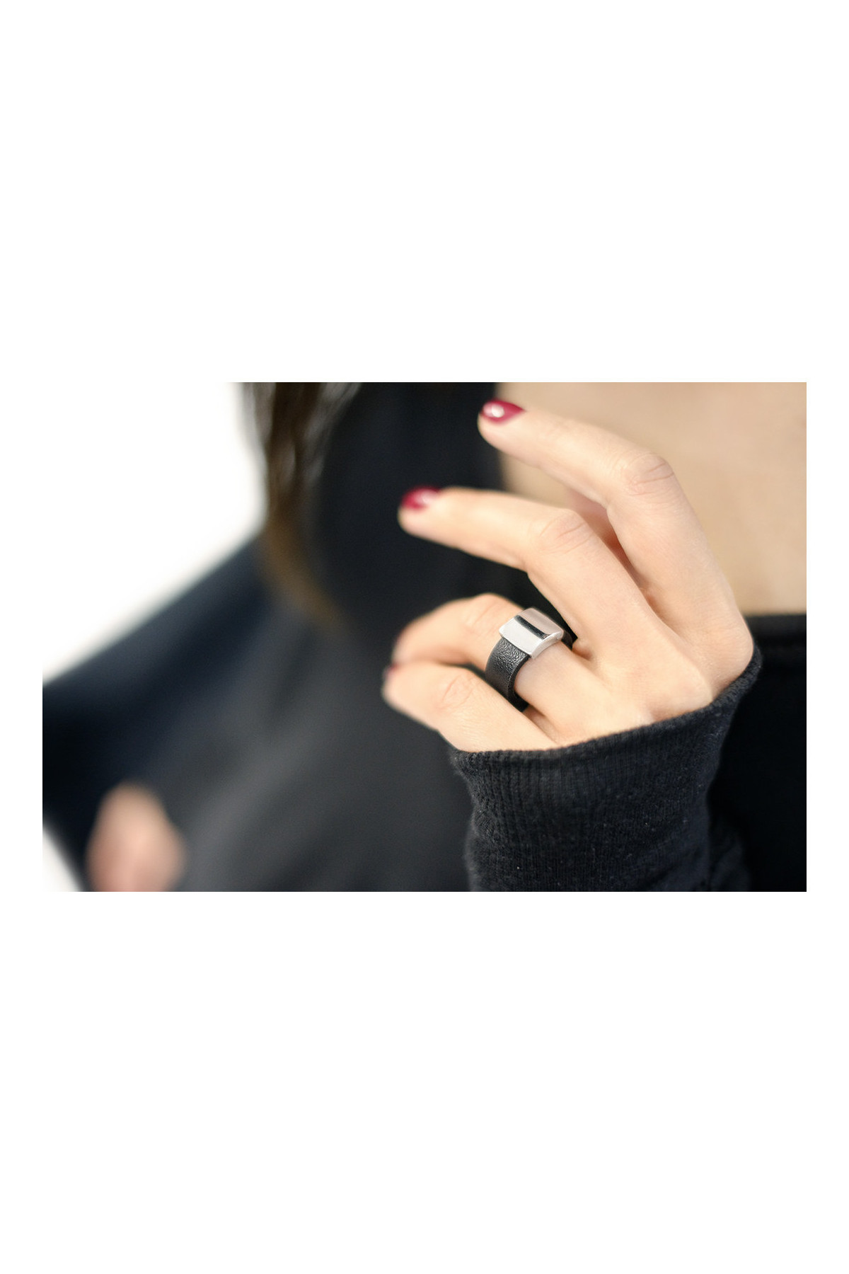 Ring made of leather and 925 sterling silver in a modernist style. Handcrafted, lightweight, and elegant. A perfect accessory for contemporary outfits.Product code: PSK003
